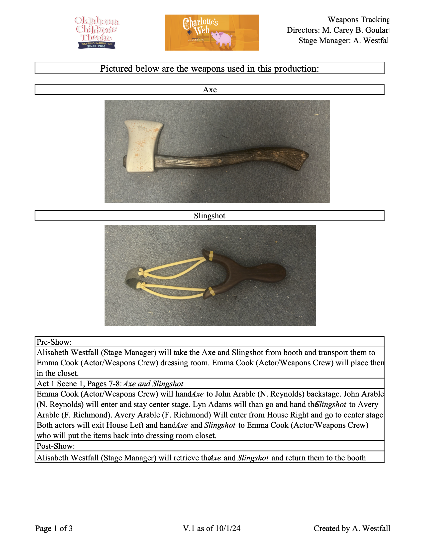 Below I have provided paperwork from the production. Click on the paperwork to see the full document